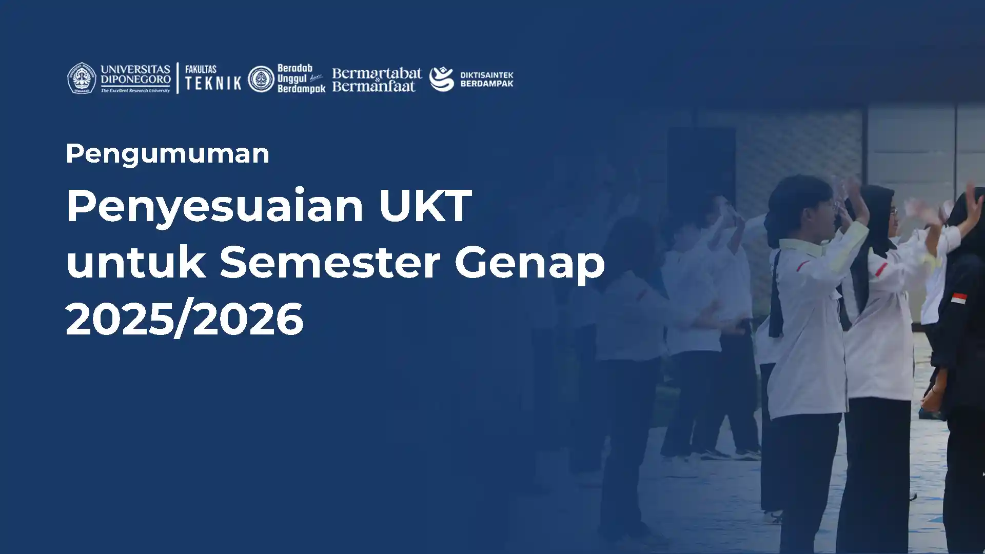 Berdasarkan Surat dari Wakil Rektor Perencanaan, Keuangan, Aset, Bisnis, dan Kerumahtanggaan Universitas Diponegoro No. 983/UN7.A2/KU/XI/2025 tentang Penyesuaian UKT Semester Genap 2025/2026, kami sampaikan bahwa Universitas