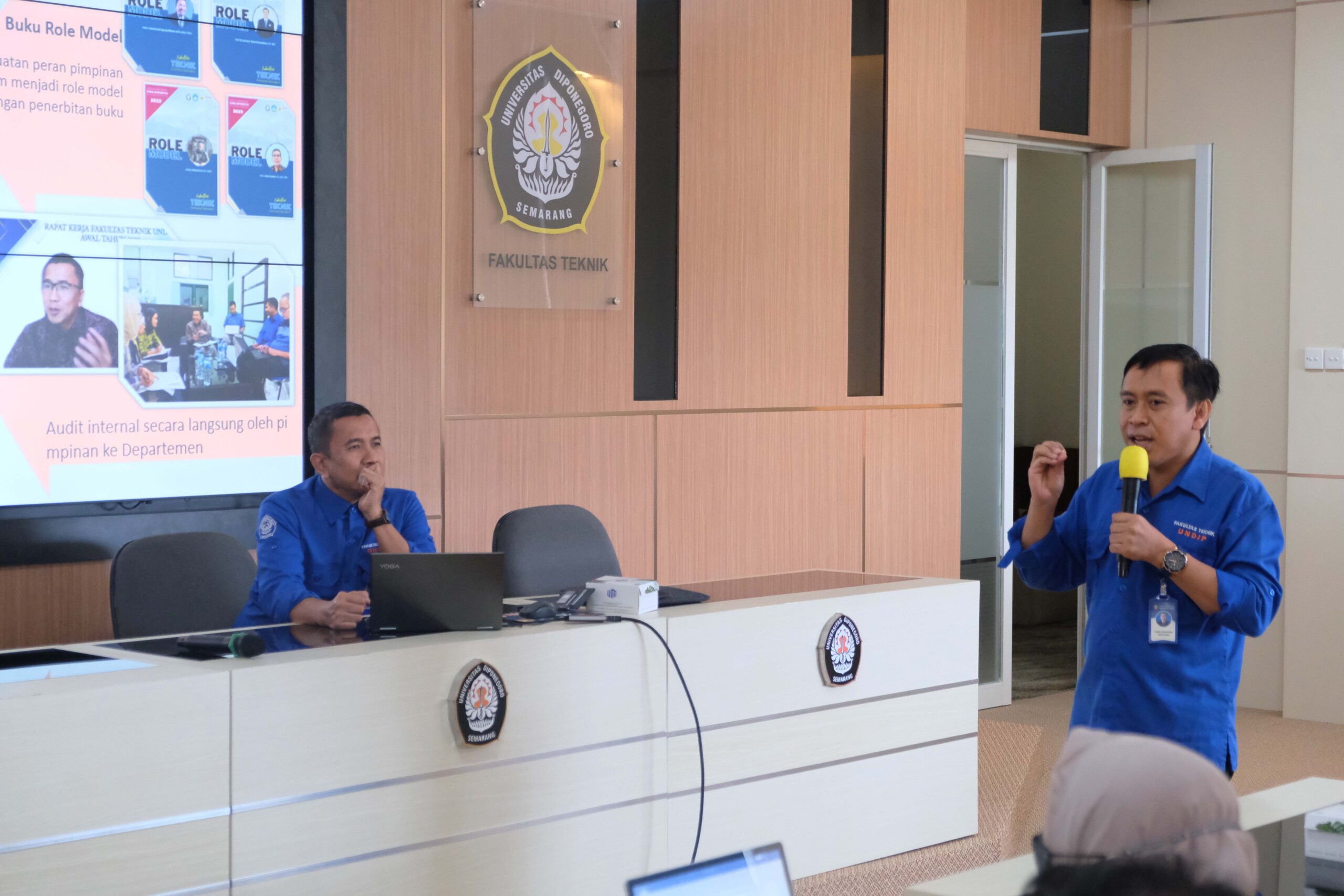 Dalam sambutannya, Dekan FT Undip, Prof. Ir. M. Agung Wibowo, M.M, M.Sc, Ph.D. menekankan dalam bekerja hendaknya kita dapat menjadi contoh dan panutan bagi orang lain. “Dalam melayani, tata kerja kita harus mencerminkan bahwa kita adalah role model dan dapat menjadi contoh yang baik. Hal tersebut dapat dimulai dari hal sederhana seperti mematikan lampu, keran, dan AC ketika tidak digunakan,” tutur beliau.