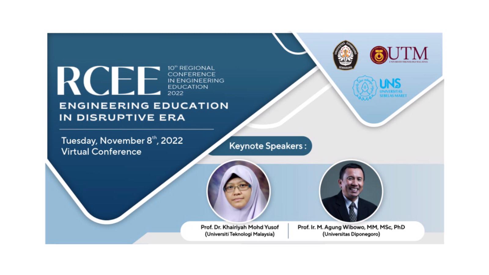 CALL FOR PAPERS 10th Regional Conference in Engineering Education (RCEE 2022), is organized by the Universitas Diponegoro, which will be held virtually on November 8th