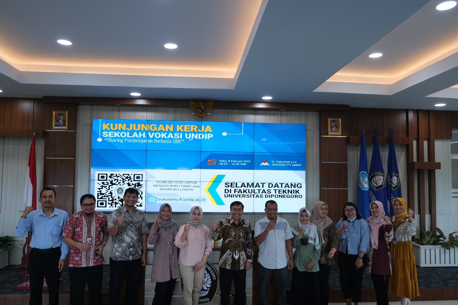 Rabu, 8 Februari 2023, Fakultas Teknik menerima kunjungan dari Sekolah Vokasi Universitas Diponegoro. Kunjungan ini bertujuan untuk saling berbagi terkait proses pembelajaran berbasis OBE (Outcome-Based Education) yang diterapkan di Fakultas Teknik. Dalam kunjungan ini, Wakil Dekan Akademik dan Kemahasiswaan Fakultas Teknik, Prof. Dr.nat.tech. Siswo Sumardiono, S.T., M.T, hadir sebagai pemateri.