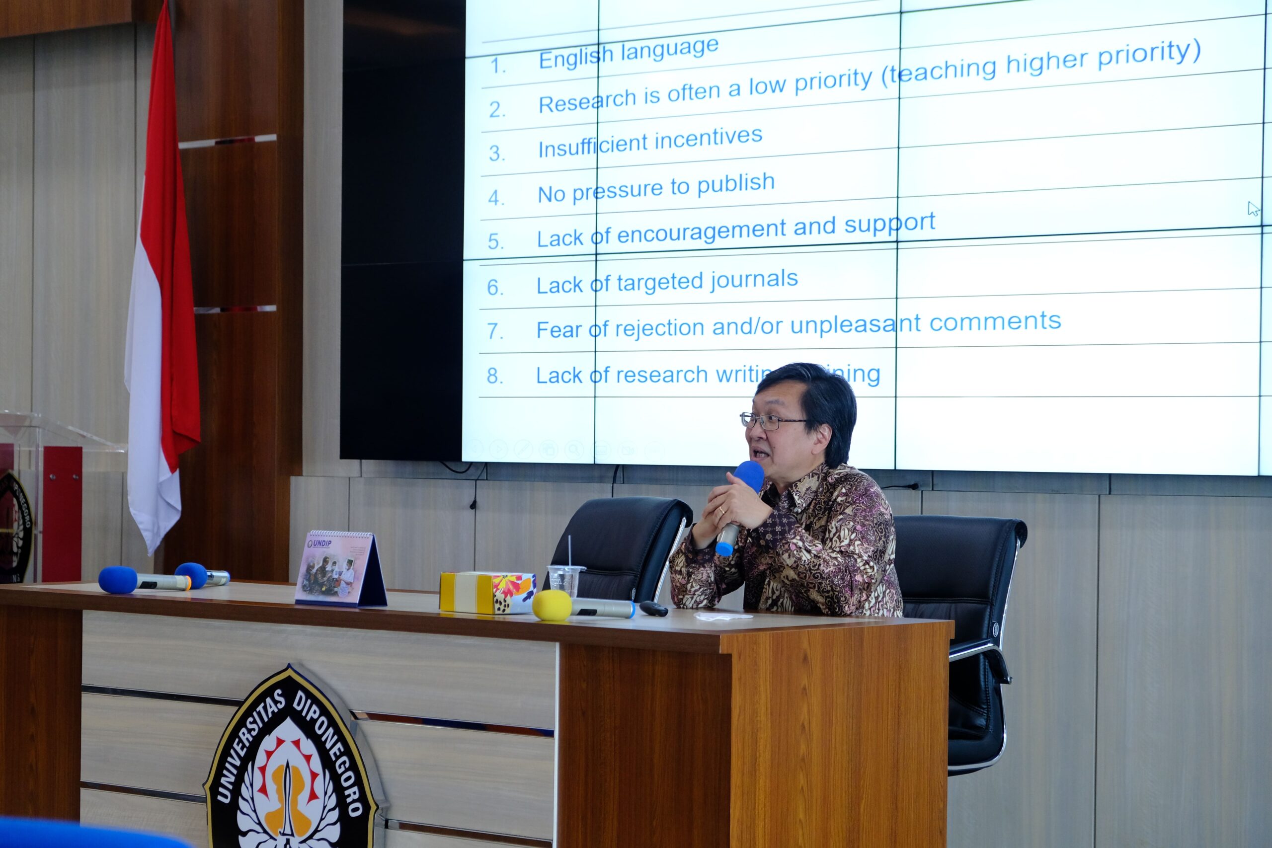 Professor Benny tidak hanya memaparkan hal penting yang harus dikerjakan dalam melakukan research namun juga memberikan informasi terkait benefit yang dapat diperoleh seperti menambah bahan publikasi, sitasi dan penambahan index. “One Stone to Hit Two Birds” ujarnya memberikan gambaran terhadap dunia research. Dengan kata lain, pentingnya riset tidak hanya membawa satu benefit namun banyak keuntungan yang akan diperoleh.