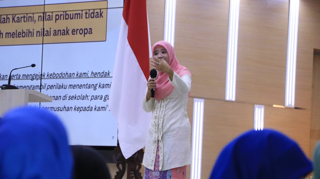Ketua TP PKK Jawa Tengah, Nawal Nur Arafah Yasin, sedang memaparkan materi tentang perjuangan R.A. Kartini
