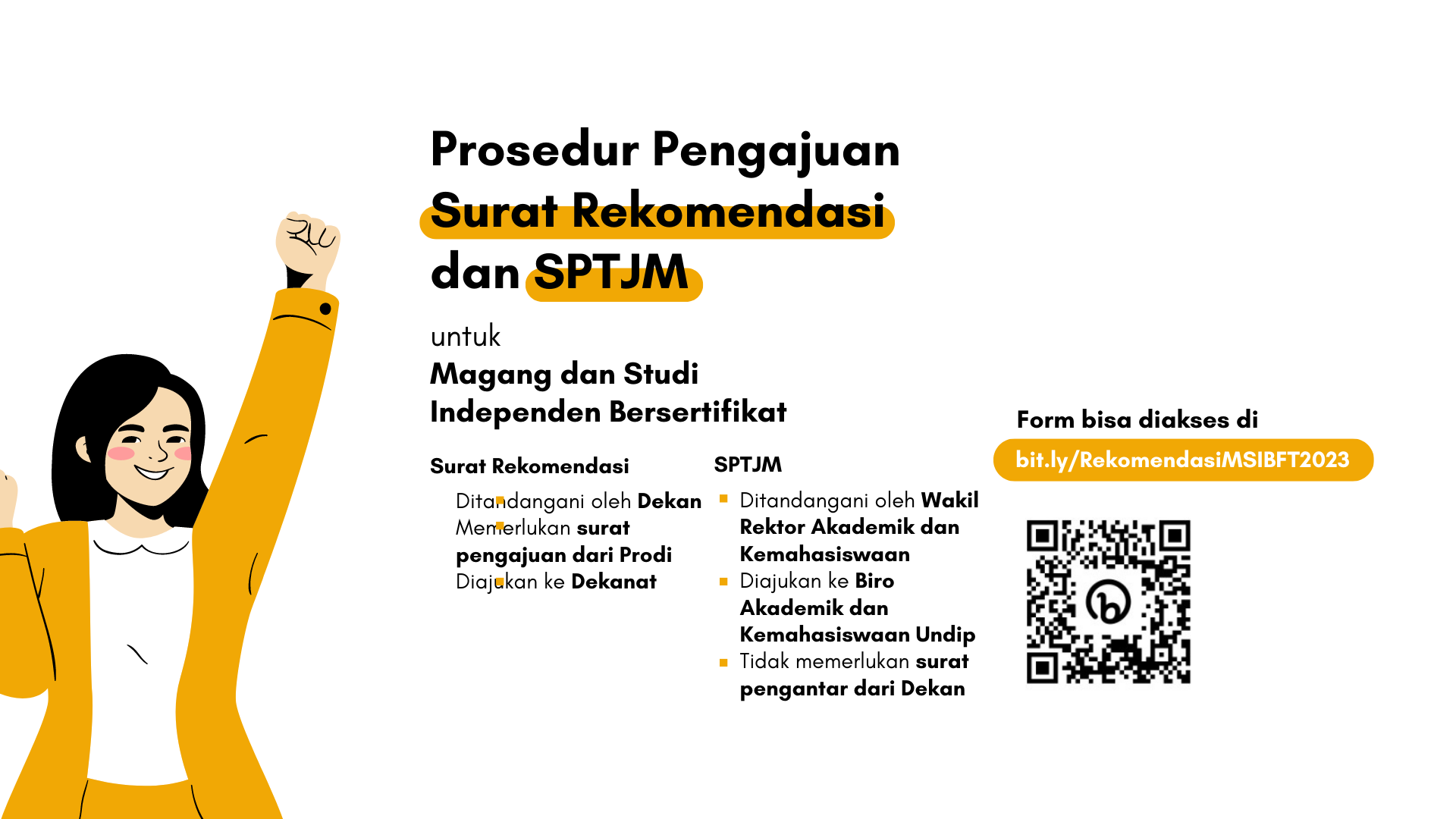 - Mahasiswa mengisi Form Pendataan Surat Rekomendasi Program MSIB 2023 melalui tautan bit.ly/RekomendasiMSIBFT2023