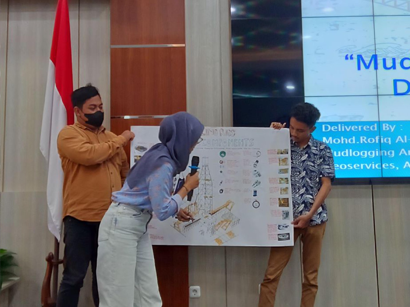 Mohamad Rofiq Al-Asyari, Mudlogging Analyst dari Schlumberger Ltd., berkesempatan untuk membagikan pengalaman dan pengetahuan beliau terkait mudlogging, yaitu pencatatan rinci terkait lubang galian tambang melalui pengamatan langsung terhadap partikel solid, gas, dan cairan yang dibawa ke permukaan oleh alat bor. Kegiatan mudlogging merupakan salah satu kegiatan penting yang sering dilakukan oleh perusahaan tambang, semisal pertambangan minyak dan gas seperti Schlumberger Ltd., untuk mengetahui kandungan mineral dan gas yang ada dalam aliran lumpur di area pengeboran.